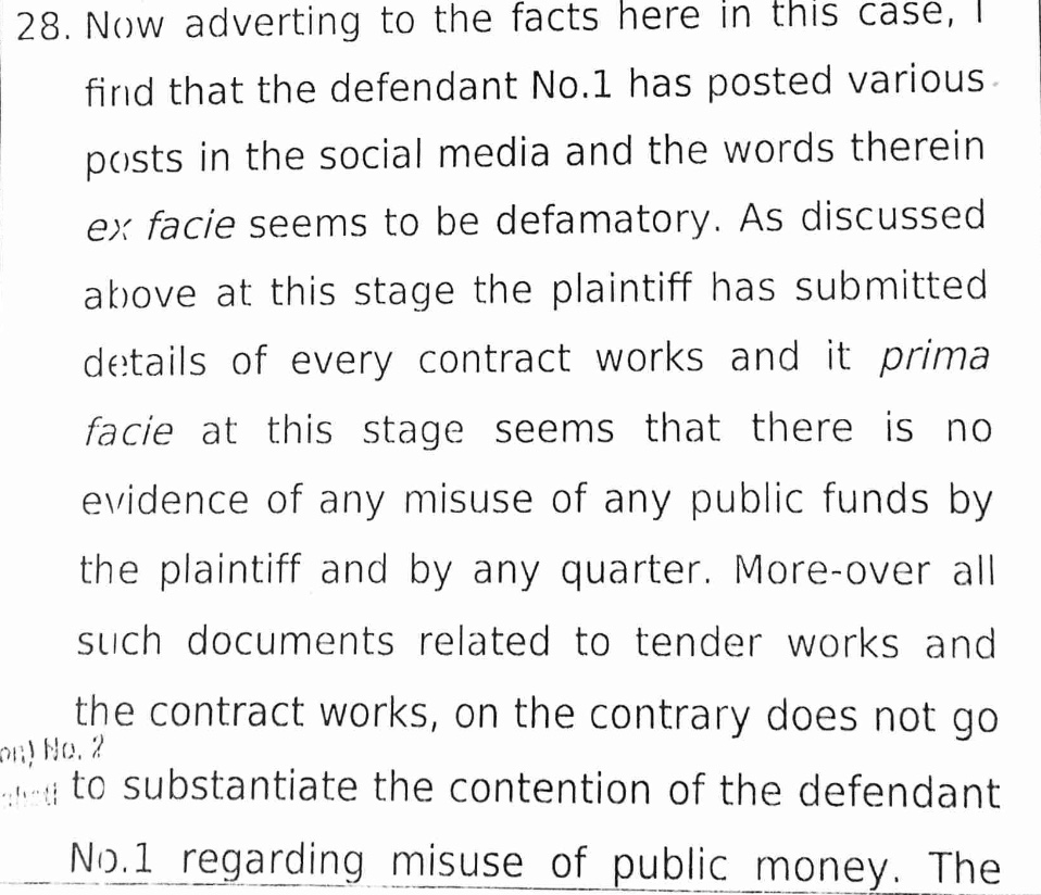 In its order, the Court rejected allegations of financial impropriety linked to university contracts that were levelled against Prof Mahanta through a series of online posts. It observed that documentary records placed before it clearly showed that the tenders and works cited by Ahmed were awarded in 2023, while Prof Mahanta assumed office only in August 2024. The Court held that there was no prima facie material to support allegations of corruption, nepotism, or misuse of office, terming the imputations reckless and unfounded.